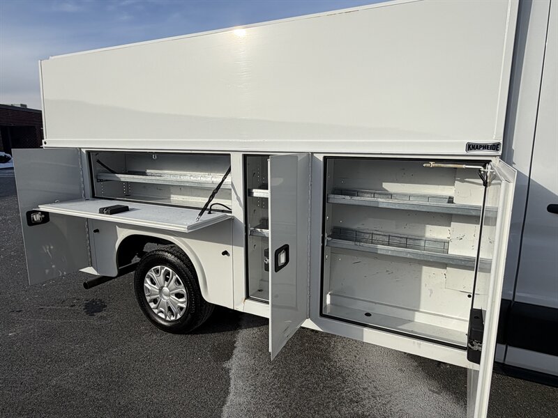 2019 Ford Transit T 350 10' Knapheide KUV Utility Service body powered by a 3.7L V6. 1 Owner! 113K Miles. Optioned up with power windows, power locks, A/C and more. Perfect for an electrician, plumber, contractor or anyone else in the trades. Very clean both inside and out, very well taken care of. Runs, drives and tracks down the road as nice as it looks - exceptionally nice utility van. Power locks in all utility boxes - keep tools safe with the click of a button.
